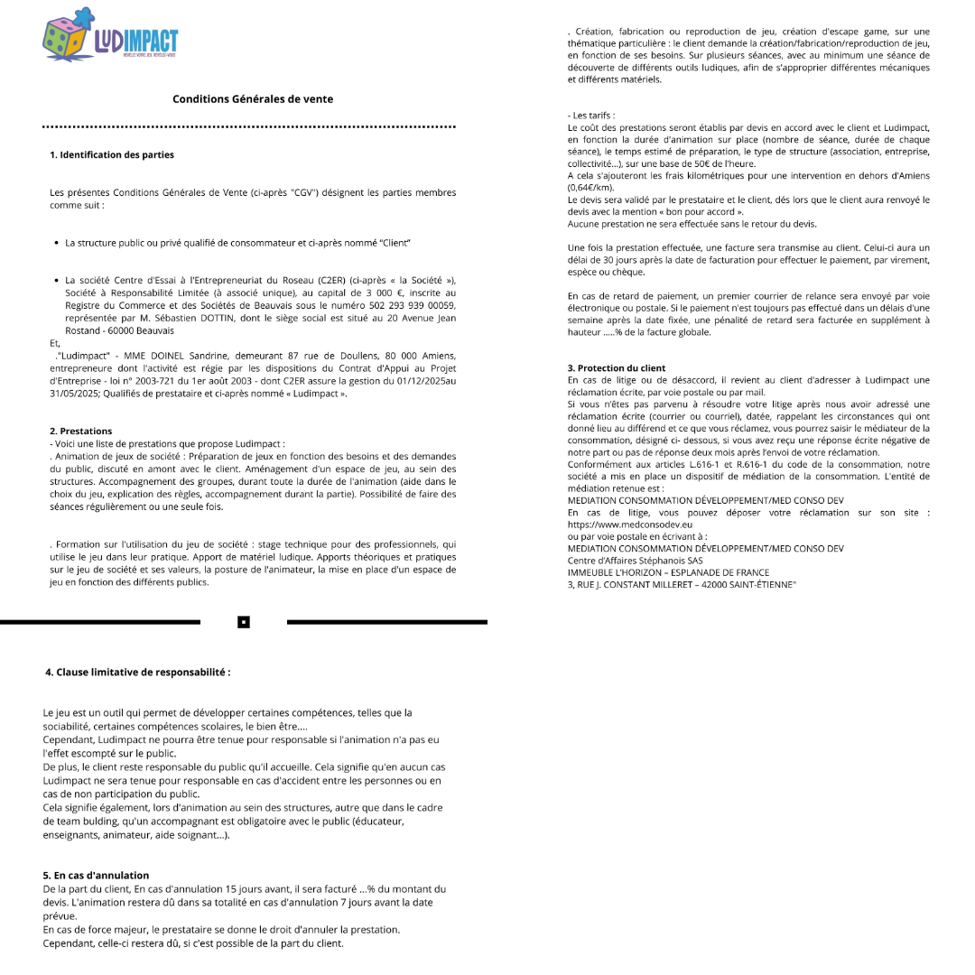 Ludimpact est spécialisée dans l’organisation d’animations de jeux de société adaptées à une grande variété de publics : maisons de retraite, instituts médico-éducatifs (IME), entreprises pour des activités de team building, et bien d’autres. Je conçoit des moments conviviaux et stimulants, favorisant le partage, la réflexion et la cohésion. Je propose également des formations destinées aux professionnels qui souhaitent intégrer le jeu dans leurs pratiques éducatives ou d’accompagnement, afin d’enrichir leurs interventions et d’améliorer l’expérience de leurs bénéficiaires.